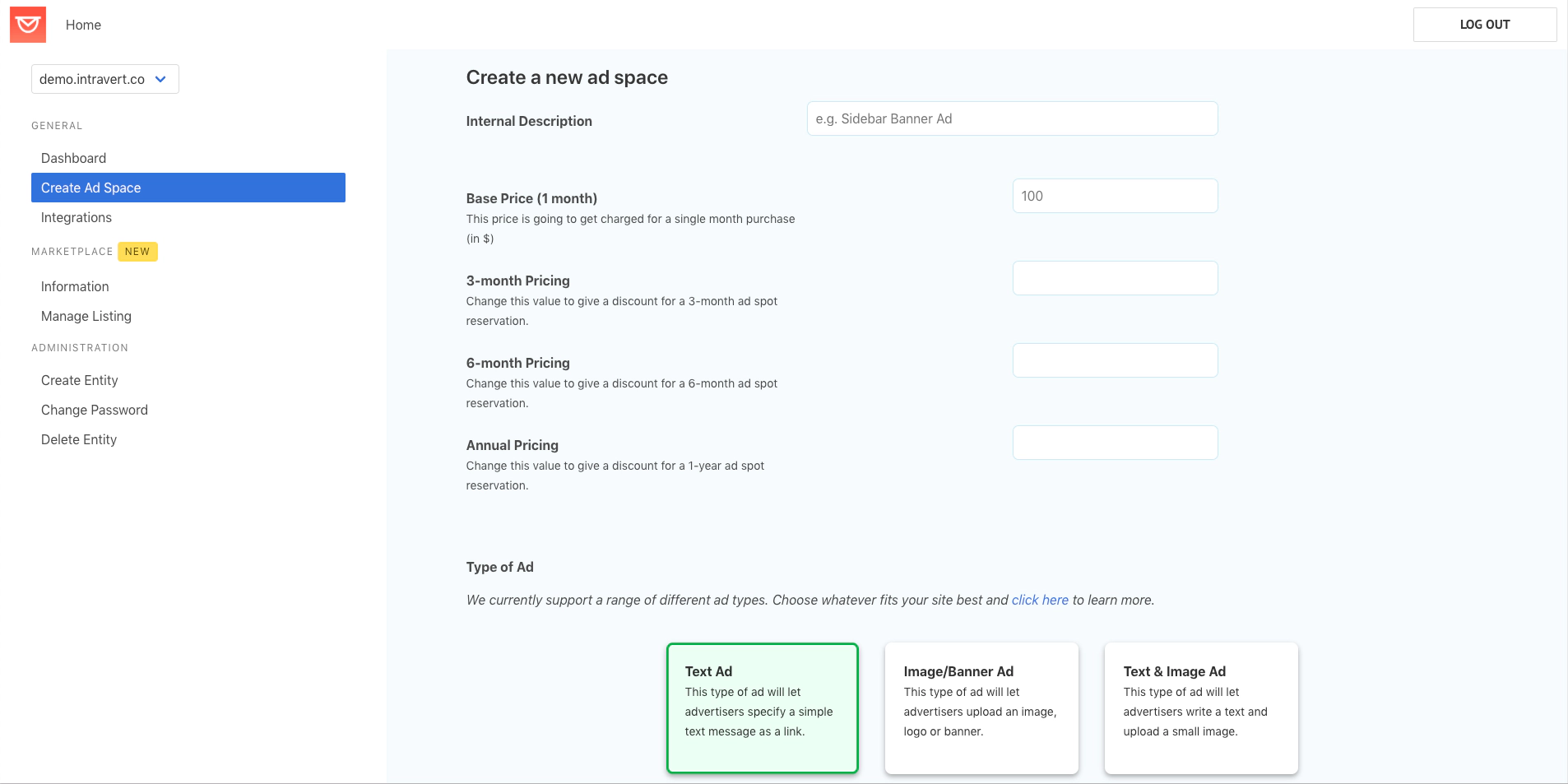 Create an ad space